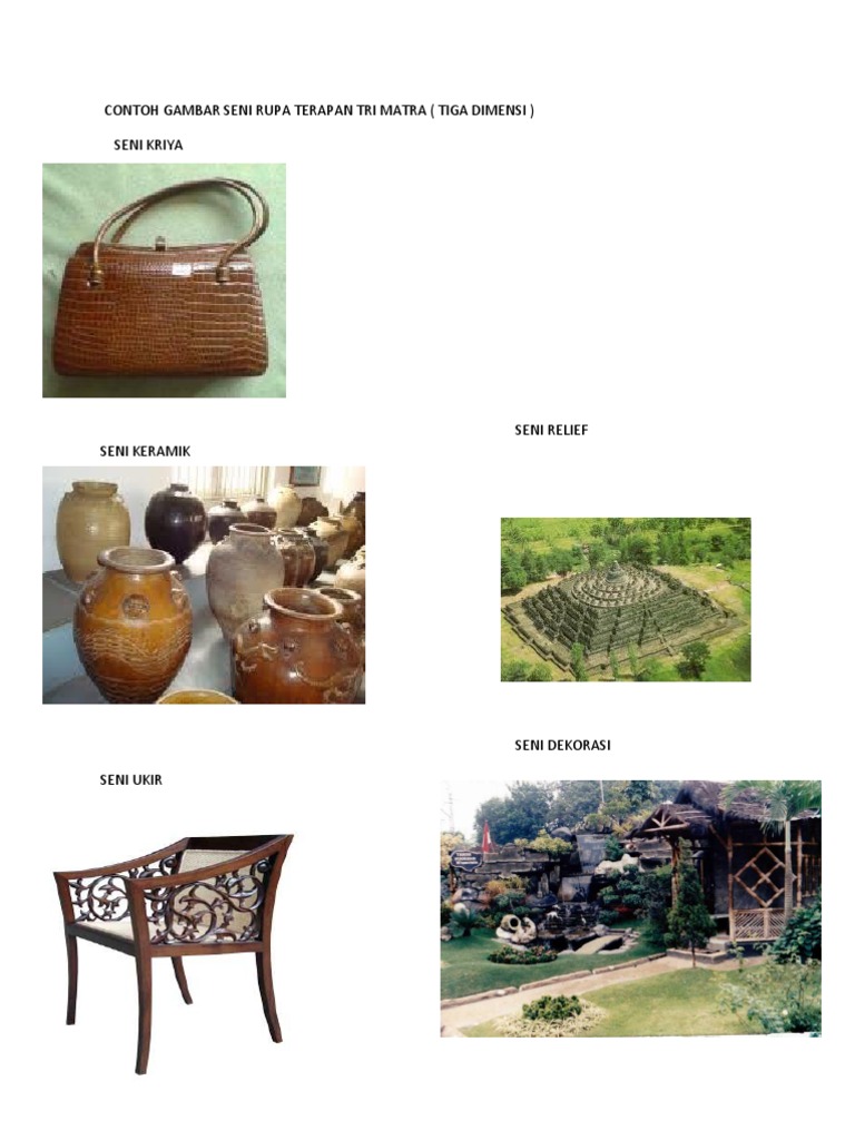 Contoh Gambar Seni Rupa. Seni grafis yang datang ke Indonesia memiliki fungsi ganda, yaitu sebagai teknik untuk menciptakan. Contoh : seni patung, seni kriya, seni keramik, seni arsitektur dan berbagai desain produk.